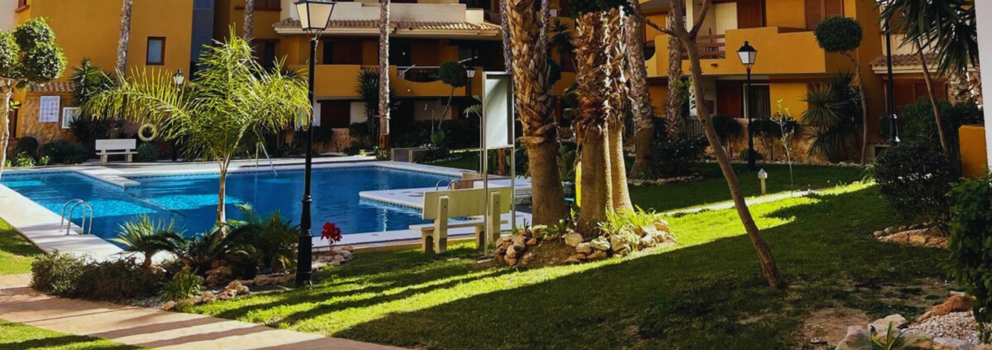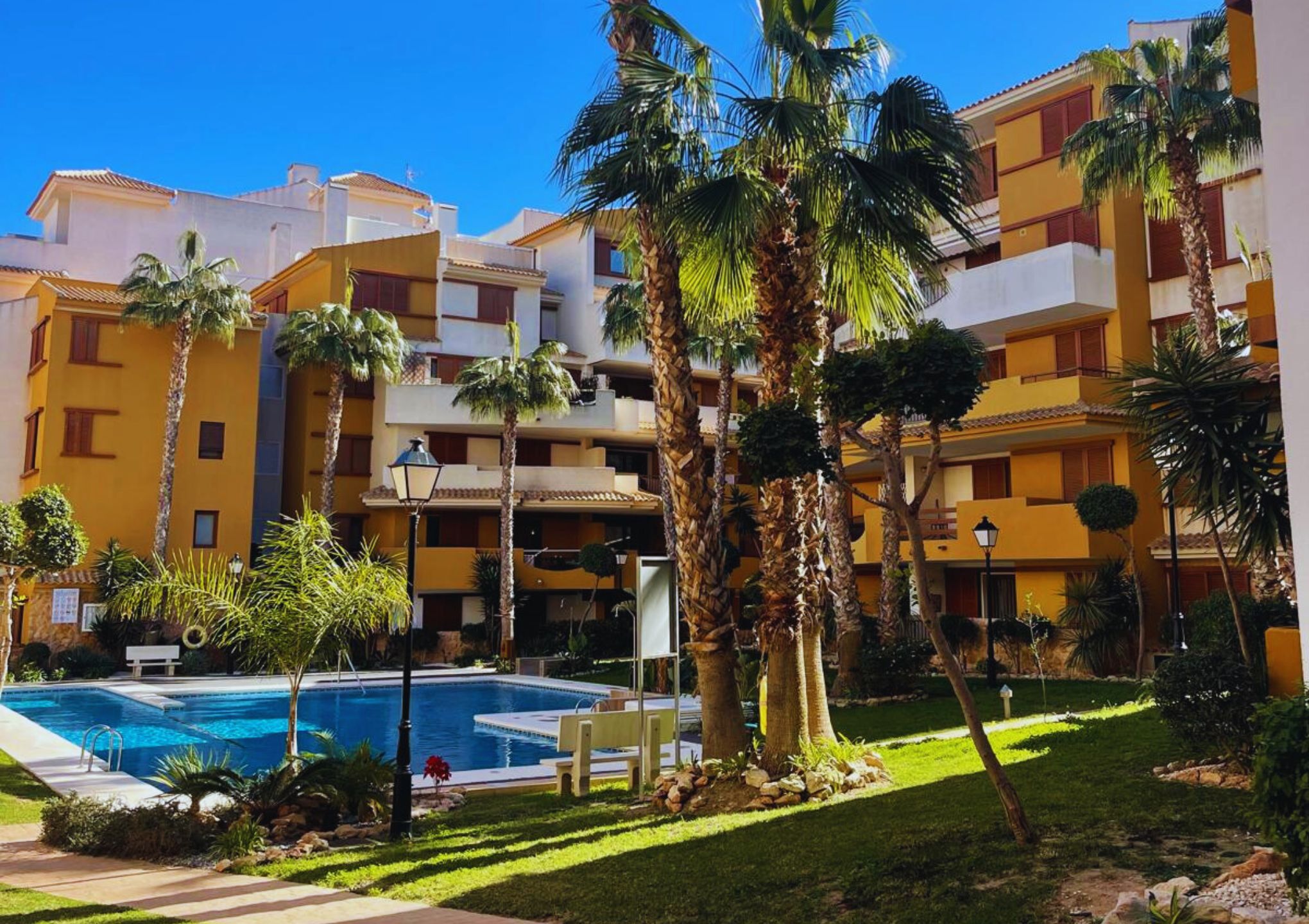 Osiedle jest zamknięte, zadbane i pełne zieleni, a do dyspozycji gości są dwa baseny, otoczone palmami i ogrodami.