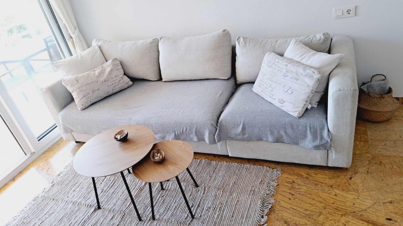 - Salon: Przestronny i jasny, z wygodną sofą i płaskim telewizorem, idealne miejsce do odpoczynku. Duże okna zapewniają świetne oświetlenie naturalne.