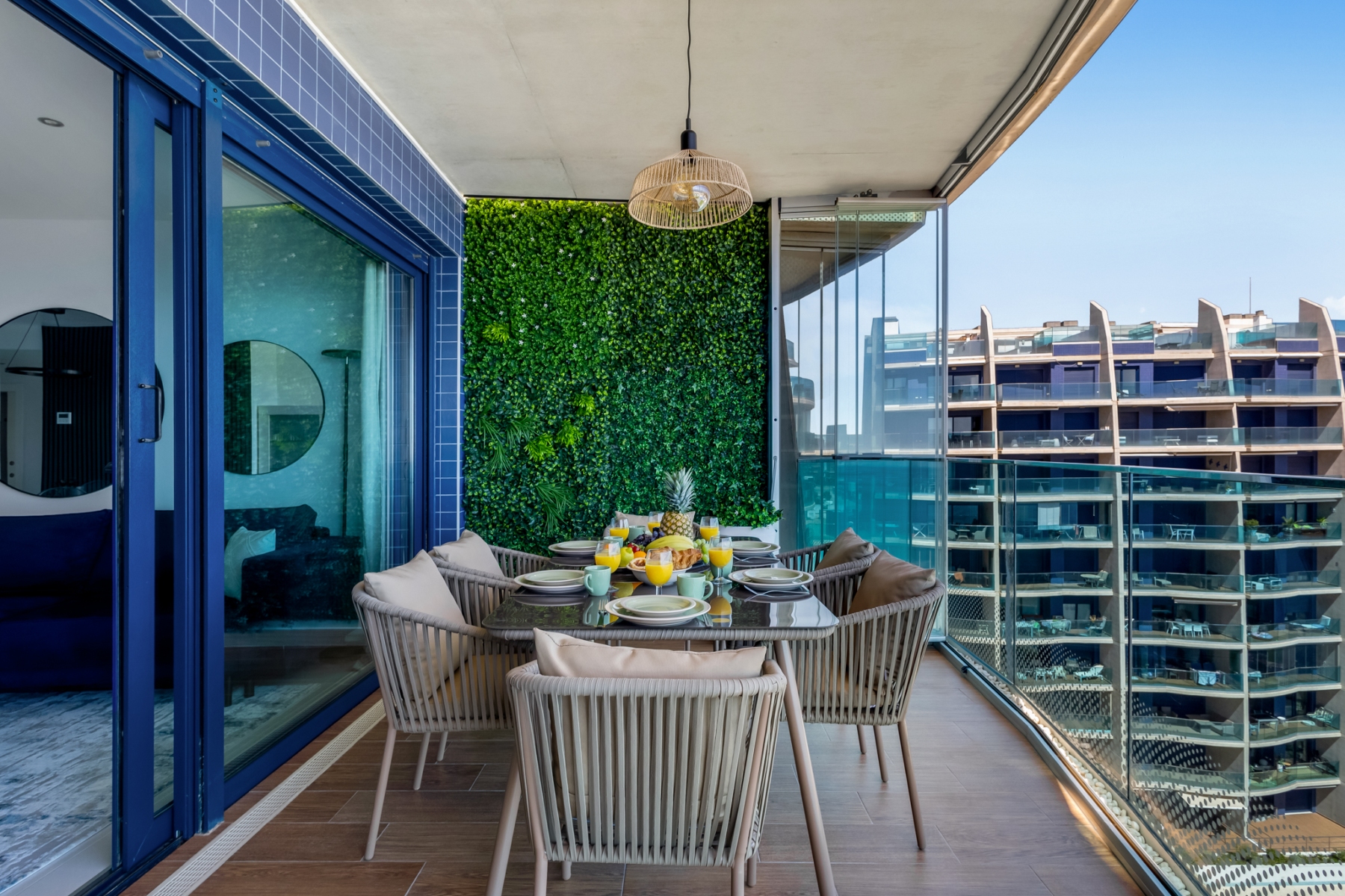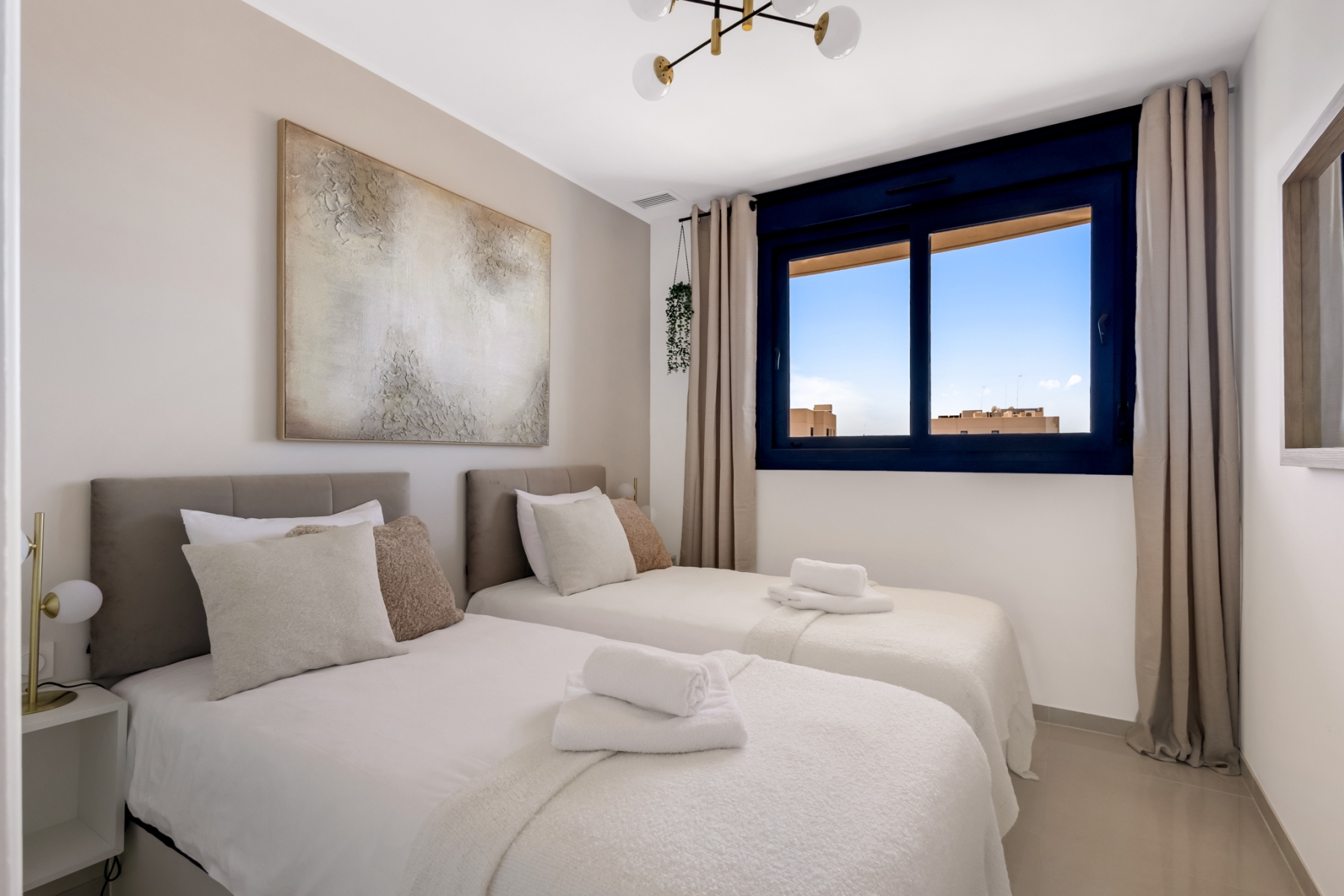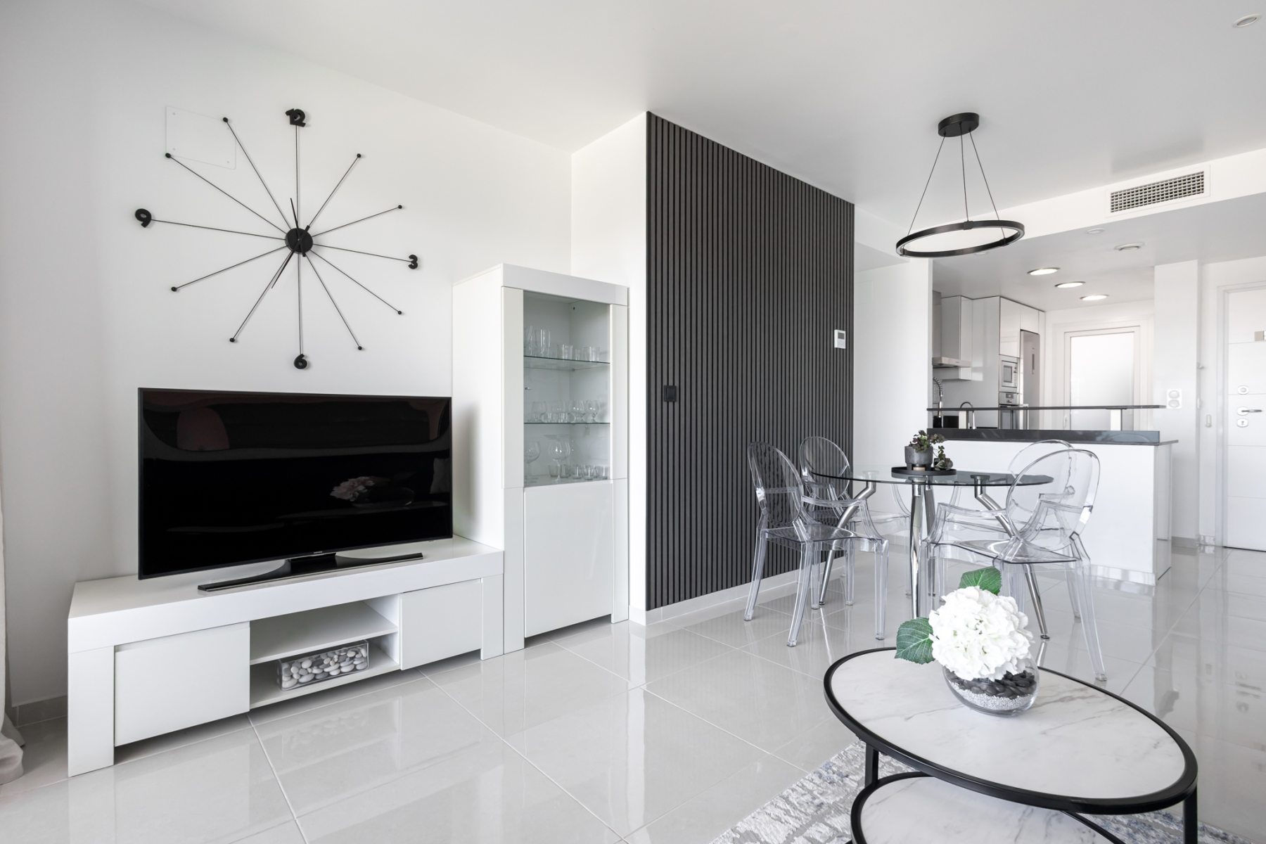 Apartament znajduje się w luksusowym, strzeżonym kompleksie z podgrzewanym basenem Infiniti, basenami dla dzieci i dorosłych, wodnymi placami zabaw, jacuzzi, siłownią z widokiem na morze, strefami relaksu oraz kortami do padla, koszykówki i piłki nożnej. W pobliżu promenady i plaży Punta Prima z restauracją nad samym morzem (350 m). W okolicy znajdują się restauracje, sklepy i apteki.