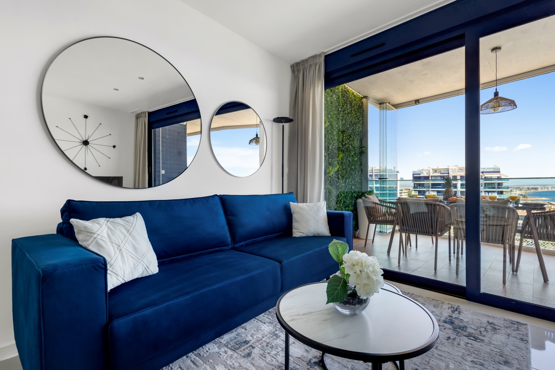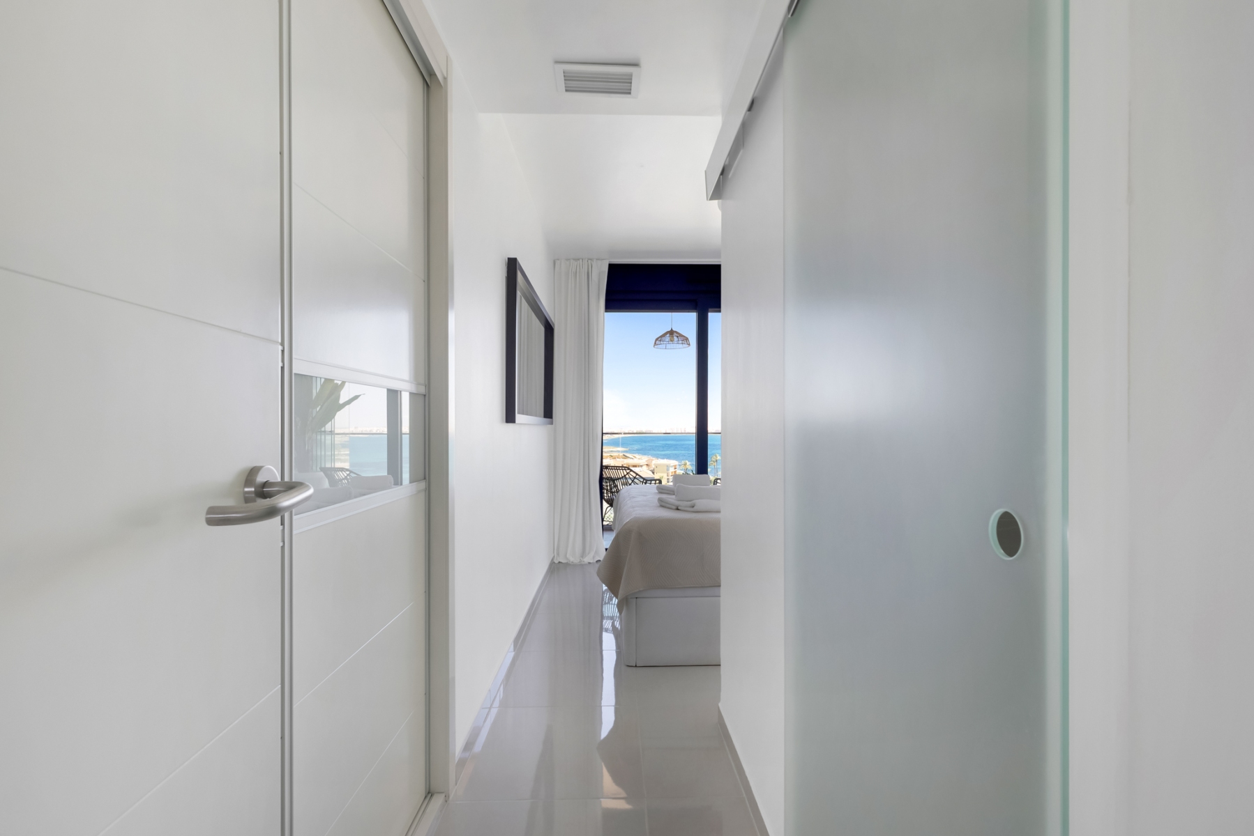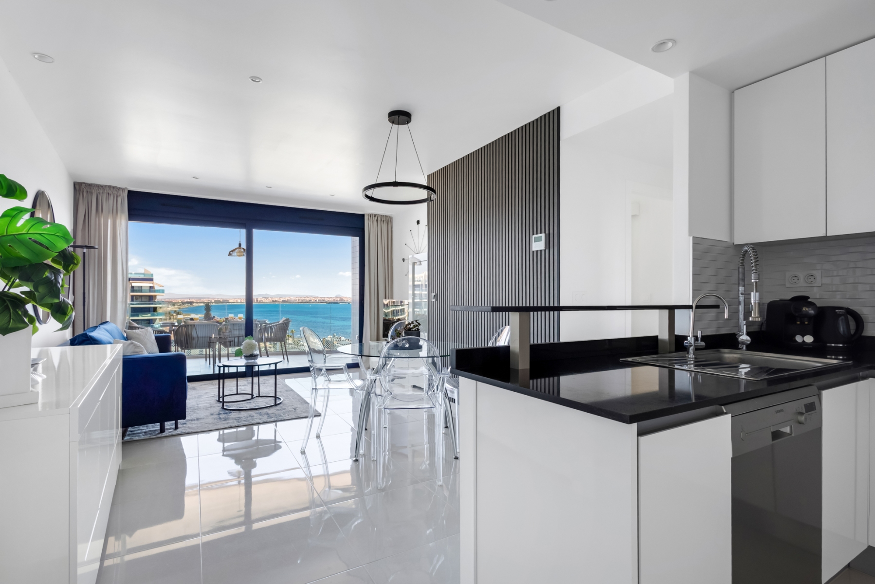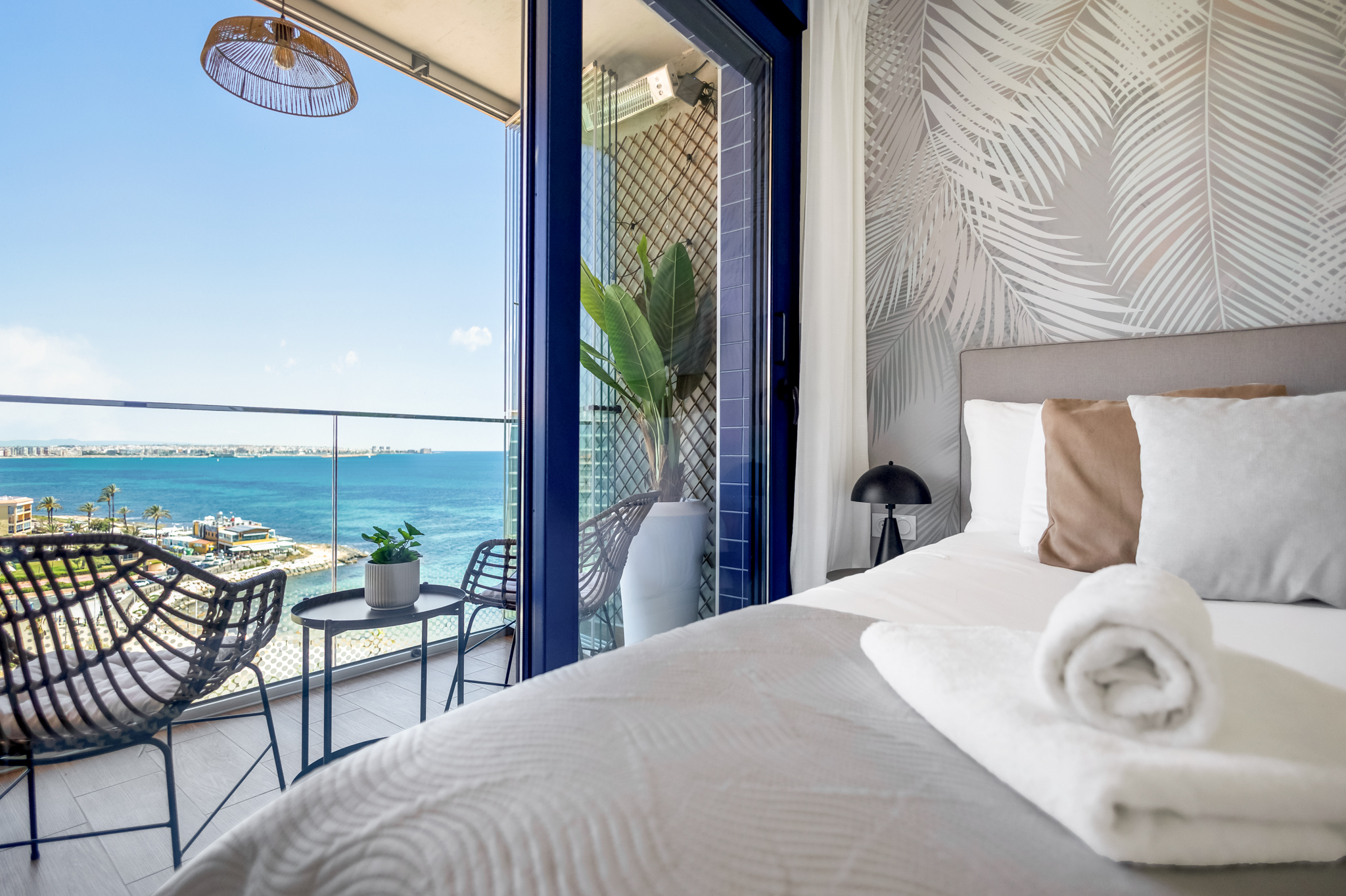 PANORAMA Seaview Deluxe Apartment to luksusowy apartament w pierwszej linii brzegowej w Punta Prima, Torrevieja. Apartament oferuje 2 komfortowe sypialnie i 2 łazienki (w tym jedną prywatną przy głównej sypialni). Przestronny salon z jadalnią prowadzi na duży taras z osłoną przeciwwiatrową, z którego rozciąga się zapierający dech w piersiach widok na morze i panoramę miasta. Do dyspozycji gości jest w pełni wyposażona kuchnia i osobna pralnia.